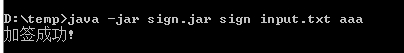 l 加签:加签密钥aaa,需要加签文件路径D:\ temp目录,运行加签命令java -jar sign.jar sign input.txt aaa后,会在原文件中直接加签。会在命令行窗口看到加签结果。