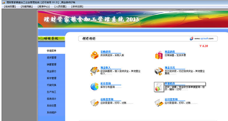 理财管家粮食加工管理系统是进销存财务管理四位一体的管理软件,特别为中小企业量身定做,采用“简单易用”的理念设计,上手快,能及时准确地帮助您了解企业每天的销售收入、费用支出、往来帐款、粮食代储、粮食收购加工及粮食代储兑换业务、财务数据,全面辅助企业经营管理;能让您随时了解企业的业务数据,清晰地了解每一件商品、每一笔资金、每一项欠款、每一项费用以及盈亏的来龙去脉,让您明明白白做生意。