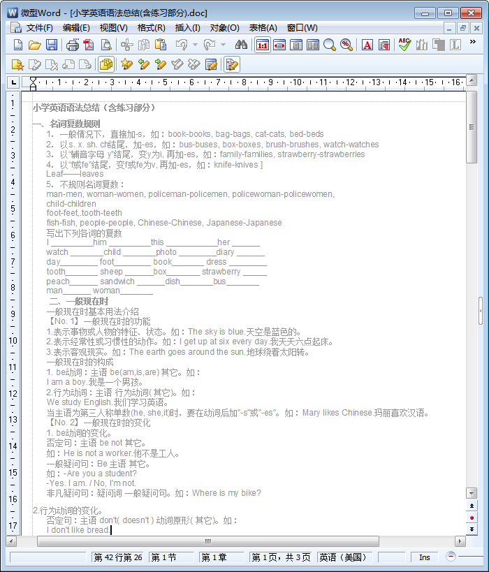 英语语法重要吗?答案是肯定的!有人说如果英语是一座山的话,那么英语语法就是登山用的拐杖你,给学习者予以重要的支撑。本节内容东坡小编为大家整理带来的是一份word免费版小学英语语法大全——也就是这份含练习题的小学阶段英语语法总结了,以下是该word文档的相关介绍,有需要的朋友点击本文相应的下载地址进行下载即可查阅该文档的全部内容!