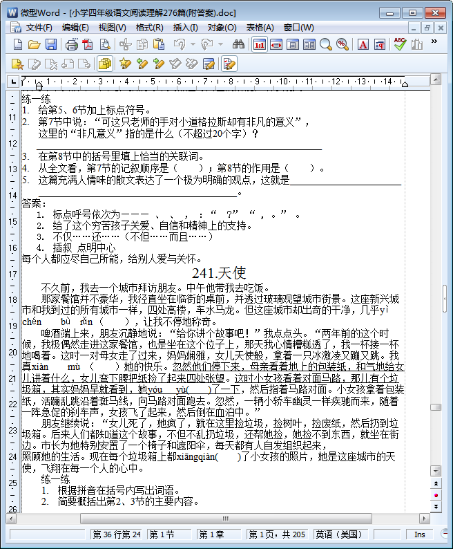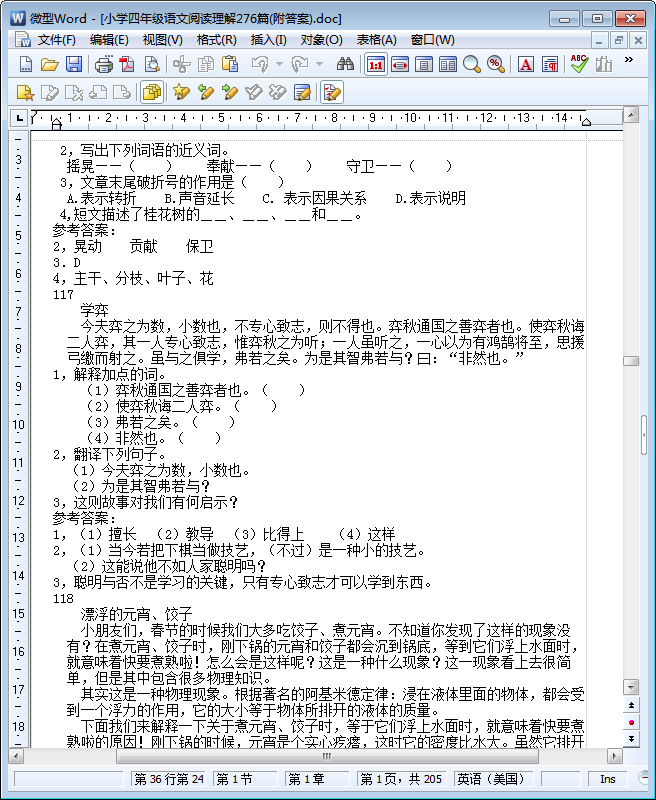 把阅读理解做好了,还怕语文成绩提不上来吗?本节内容东坡小编为大家整理带来的是一份word免费版附答案共由276篇组成的小学四年级语文阅读理解大全,需要这样一份四年级语文阅读理解题及答案文档的朋友们点击本文相应的下载地址进行下载即可。