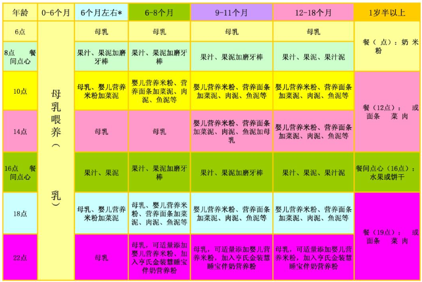 以后一直到12个月可保持这个时间表,辅食量可稍加一些,但不宜过多