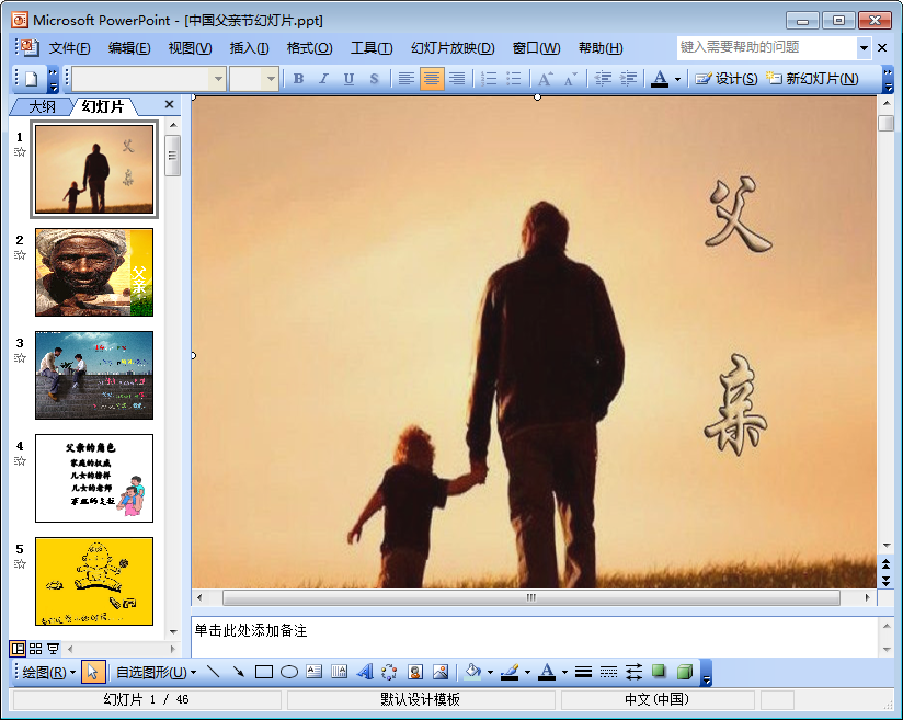 想知道中国父亲节的由来吗?想制作一份与中国父亲节有关的ppt但却没有合适足够的素材吗?如果你的回答是肯定的,那么不妨就将东坡小编为你整理带来的这份最新整理版中国父亲节由来介绍PPT幻灯片下载下来参考一下吧!以下是关于该ppt的相关介绍,有需要的朋友点击本文相应的下载地址进行下载即可!