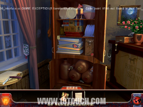 点击接待台旁边的柜子,出发一个寻物游戏,物品的位置如下。