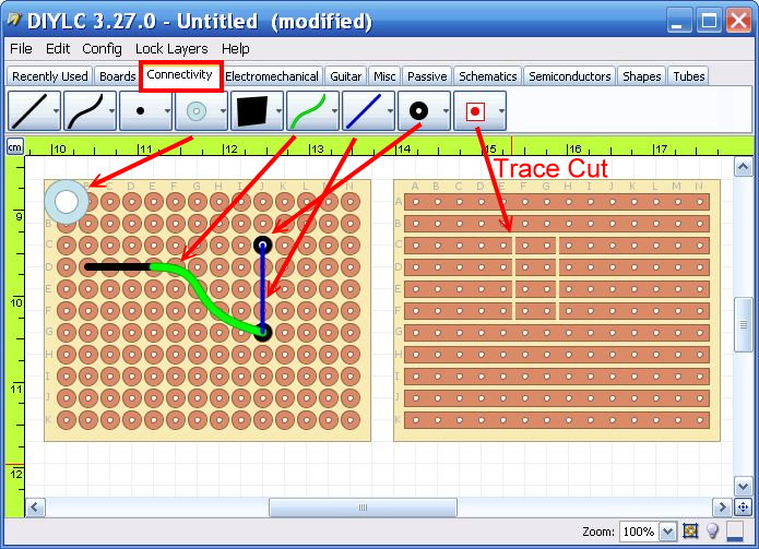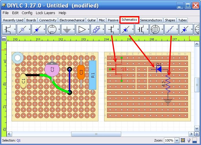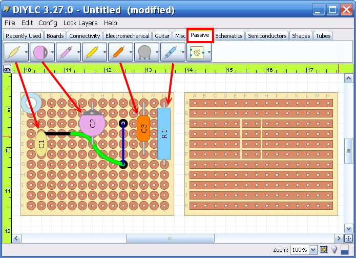 DIYLC是一款用于设计pcb电路板也就是我们俗称的洞洞板的软件,这款软件全称为DIY Layout Creato,它是一款用来设计电路图的绘图软件。