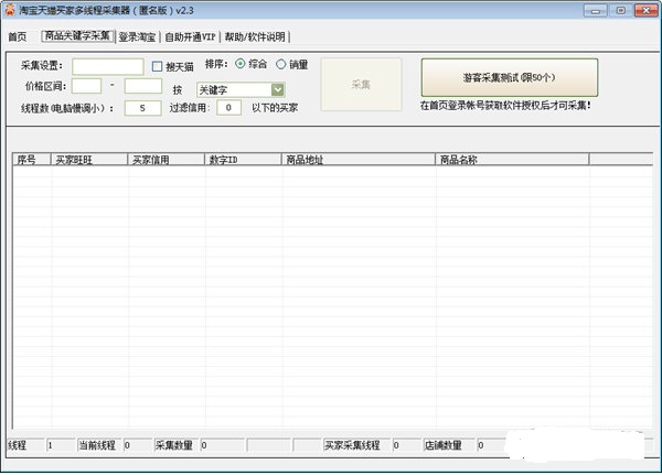 淘宝天猫买家多线程采集器,有打标软件的可加入火淘宝至尊VIP,即可享免费使用挖客专家。该软件小巧方便适合下载使用。