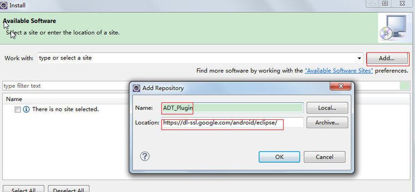 启动Eclipse,依次单击Help→Install New Software→Add→Archive菜单命令
