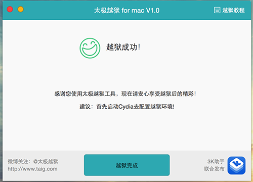 正式发布太极越狱Mac版V1.0.0,支持iOS8.1.3-iOS8.4系统完美越狱。