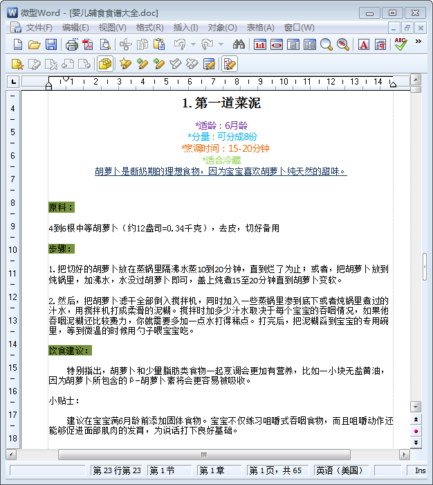 本节内容东坡小编为大家整理带来的是一份word免费版婴儿辅食食谱大全,该婴儿辅食食谱大全中共包含有82种辅食的做法及相关介绍及说明,内容十分详细,如果你对于如何给宝宝做辅食这事一筹莫展,如果你想掌握更多婴儿辅食做法,那么不妨就将这份婴儿辅食做法大全下载下来慢慢研究一下吧!点击本文相应的下载地址即可查阅82种辅食做法的全部内容哦!