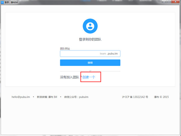 双击打开”瀑布IM.exe“,点击”创建一个“