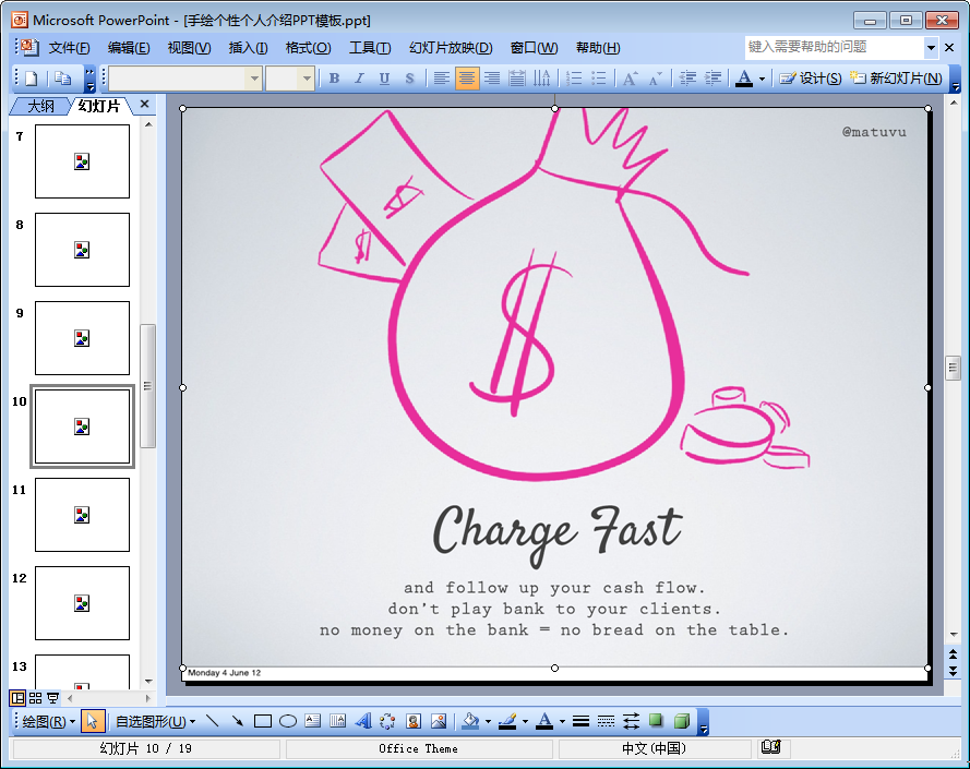 第三:不要有过多的文字,可以的话可以展示你一些生活、工作的照片,尽量用轻松活泼的图片、自定义图形、图表等东西来代替你的文字。