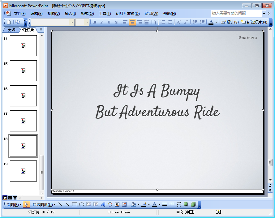 手绘风格个人个性介绍PPT模板——所以东坡小编为你整理带来的这份素材的重点是想说这是一份具有手绘风格的、可以用来作为个人自我介绍使用的一份颇具个性的PPT模板,如果你正在筹备你的自我介绍ppt,如果你需要一份手绘自我介绍ppt模板,那么相信这份手绘风格个人个性介绍PPT模板一定会为你带来灵感和帮助的哦!有需要的朋友点击本文相应的下载地址进行下载即可使用该ppt模板!