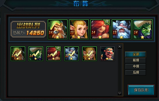 每个英雄都有属于自己的位置,我们要做的就是选择你出战的英雄,组合成战队。