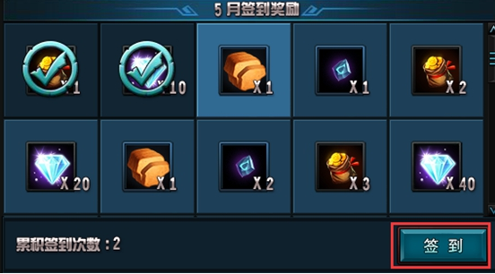 每日只能签到一次,获得当日奖励,并累计签到次数。