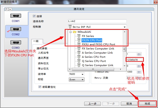 4、选择FX2N系类的PLC
