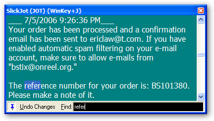 记录特性允许您保持简短的笔记。 简单拖放文本从几乎任何项目(ie浏览器,微软 SlickRun词等)和少量将收集的文本。 注意:SlickRun 自动保存的内容。