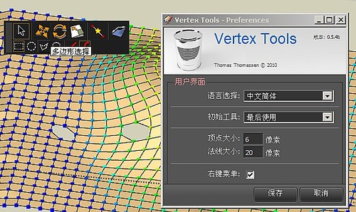 从Vertex Edit (点编辑器)的属性设置框中可以看出这个插件也可以进行多语种的选择。