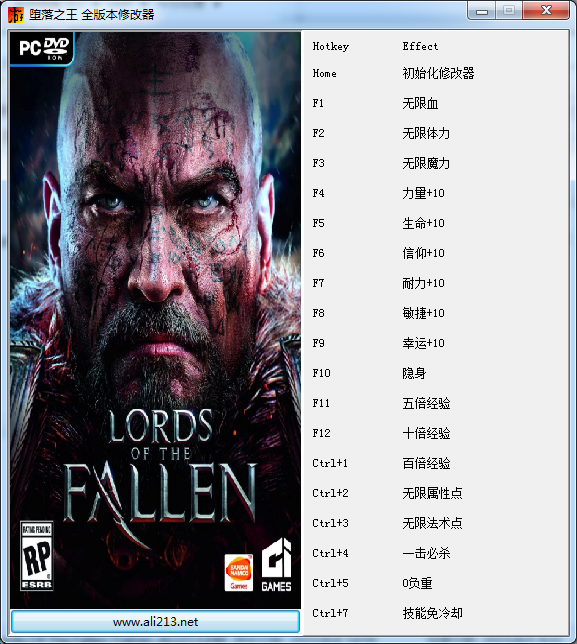 《堕落之王》全版本十八项修改器,使用特征码扫描制作,理论支持其他版本以及后续升级档,使用时先运行游戏,再启动修改器,修改成功后字体会变红色,继续游戏。
