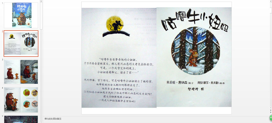《咕噜牛小妞妞》,是一个有趣的故事,讲了一个很爱冒险的小妞妞和它的小伙伴之间的一些趣事!这里给大家带来的是这个故事的PPT,赶快读一读吧!