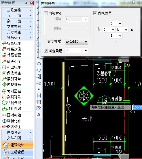 本命令创建一种符合新《国家建筑制图标准》要求的内视符号对象,用于在平面图中索引立面图或立面详图。