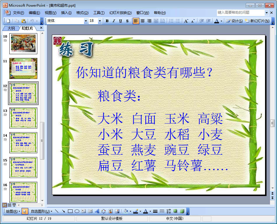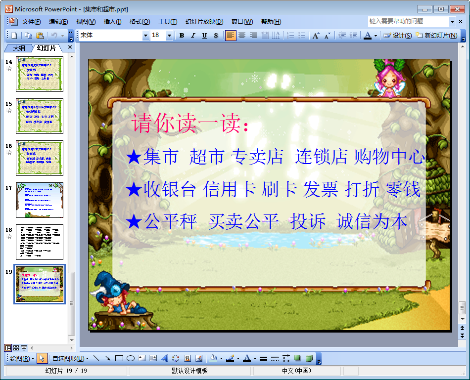 该北师大版三年级语文上册课件之集市和超市ppt课件共有19页,该ppt不仅详细介绍了集市与超市的区别,在内容编排上更是集众之所长,安排得十分合理恰当——比如生字词的导入、课后思考及练习题等。以下有关于该ppt课件的相关介绍,如果你需要这份ppt课件的话,点击本文相应的下载地址进行下载即可!