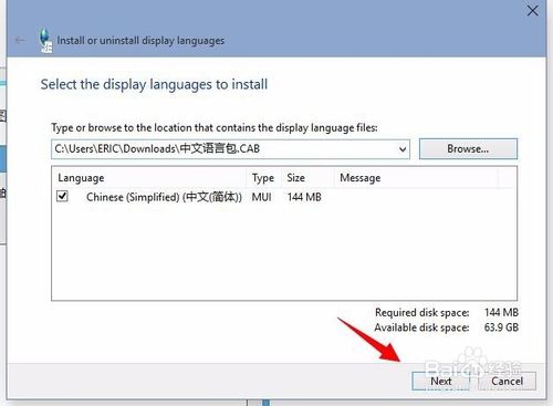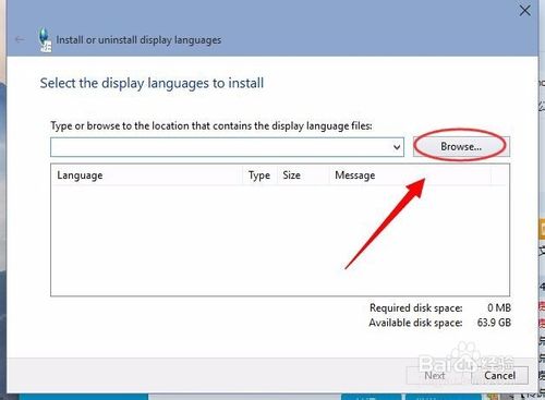如下图所示的界面中点击Browse 然后再选择你刚刚下载的语言文件包,语言包的格式为.CAB文件。