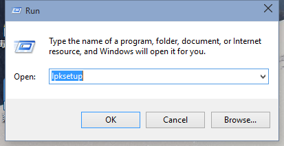 通过组合键WIN+R把运行工具调出来,再在运行中输入lpksetup这个命令。再点击一下OK
