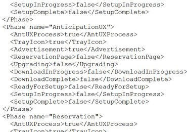 该补丁将不只提供升级通知功能,还将帮助用户进行Win10升级相关准备,下载所需安装文件并且部署到用户电脑中。因此这一补丁为Windows7/Windows 8.1免费升级Win10的官方途径,没有安装该补丁的系统将不会得到微软提供的相关升级内容。在KB3035583中,有一个名为GWX的XML文件夹相关文件中包含了升级过程的一些细节,从这些细节中我们可以了解到Win7/Win8.1升级Win10过程的一些信息。