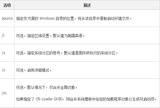 BCDboot 命令行选项