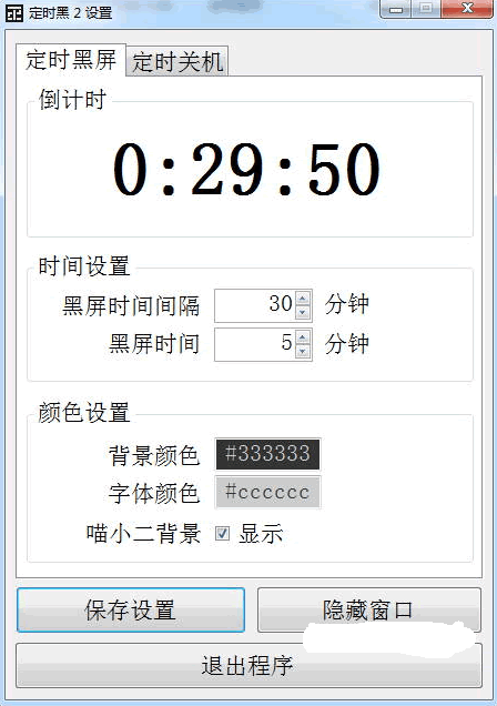 定时黑(定时休息黑屏软件)是一款简单易于使用,能够帮助用户在使用电脑工作的时候定时休息的黑屏软件。现在正是暑假的时候,孩子们都会在家玩电脑。父母出门上班的又没时间看住孩子,担心孩子们沉迷了游戏。那么你就可以使用这款定时黑屏软件来帮助到您。软件可以设置黑屏时间间隔、黑屏时间防止孩子们顾着玩电脑,不误正事哦。