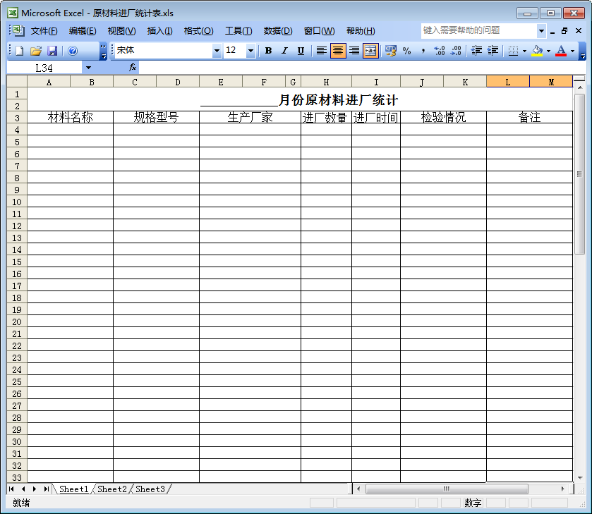 原材料进厂统计表预览图