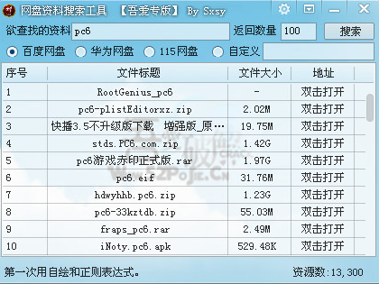 网盘资料搜索工具(吾爱专版)是一款简单易用的网盘资源搜索工具,软件小巧方便,省去你上网打开搜索引擎再慢慢搜索的麻烦,提供不同的网盘供你搜索,更可以自定义想搜索的网盘。有需要的赶紧来东坡下载使用吧。