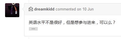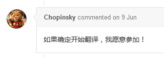 6月28日8点55分,Swift 2.0翻译正式启动。按下发送按钮后,我不停的刷新页面,半个小时过去了,一个回复都没有。“还是不行啊”“如果再过一个小时没人回复我就把issue删掉”,类似的念头不断出现,又不断消失。