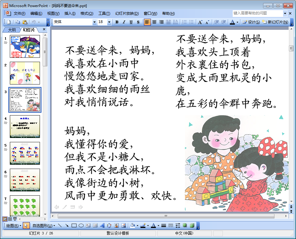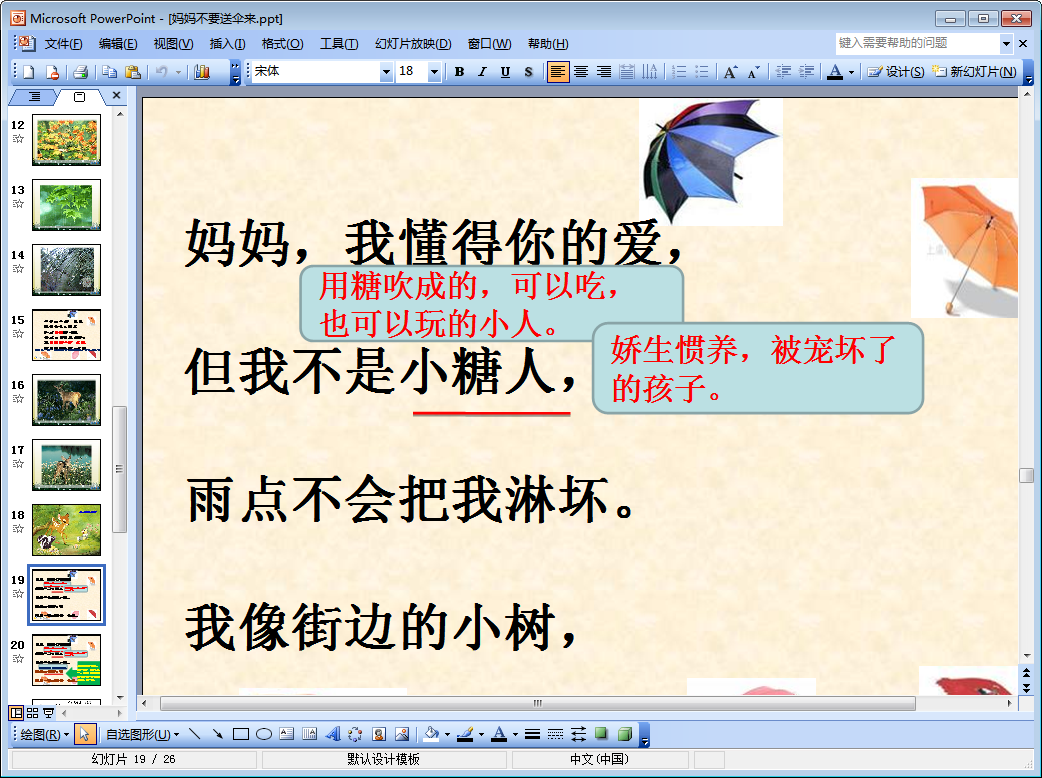 本节内容东坡小编为大家整理带来的是小学语文精品ppt课件之由26页组成的妈妈不要送伞来ppt课件,该ppt课件内容完整详细,点击本文相应的下载地址下载该ppt课件后,你会看到该ppt课件内容中不仅有关于妈妈不要送伞来这篇课文的生字词讲解,同时还有关于该课文的课堂训练及课后引导等,以下是关于该ppt课件的相关介绍,希望对大家有所帮助!