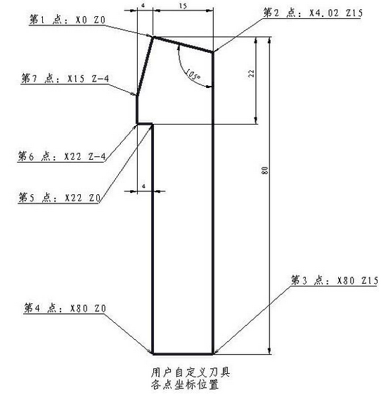 用户自定义刀具外形为一多边形封闭轮廓,轮廓各点位置以坐标方式保存在用户自定义刀具文件中。