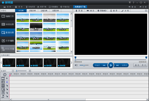 1.轻松剪辑视频、音频文件。导入超大容量视频,自带解码转码器,不需另外安装。素材左右旋转90度、保持原比例显示。 2.软件自带各种效果素材,包含转场效果、影像效果、文字效果、背景音乐及录音等,可以自由插入和重叠使用。 3.轻松下载和导入编辑星网上商城的各种素材。 4.专业时尚的文字编辑功能,包括片头片尾、字幕、标题。 5.支持实时录音功能和局部消音功能。 6.形象水印功能,可随意插入自己的专属logo。 7.支持输出HD16:9高清宽频(1280*720px / 1920*1080px) 8.支持上传到优酷和土豆平台。 画中画主要功能: 1.多视窗视频制作,用鼠标将多个多媒体文件拖入编辑窗口,就能制作多视窗的视频。 2.操作简单,鼠标拖拽即可调整视频或图片的位置、大小和旋转角度。 3.轻松剪辑音视频文件。 4.可加边框效果,可加FX效果、可加进出场的方向及调整进出场的速度。 5.4个编辑轨道里可轻松调整多媒体素材的长短及进出场的时间。 6.自由导入编辑星网上商城提供各种动态、静态图片作为视频背景。 7.自由插入设置背景音乐。 8.形象水印功能,可随意插入自己的专属logo。 9.支持输出HD16:9高清宽频(1280*720px / 1920*1080px) 10.支持上传到优酷和土豆平台。 电脑配置需求: 1.处理器要求:Pentium4 - 3.7GHz ,或 AMD Dual Core 2.0-GHz 。 2.操作系统:Microsoft Windows 7(32 位或 64 位版本)、Windows 8(32位和64位)、Windows Vista SP1 和 SP2(32 位或 64 位版本)或 Windows XP SP3 作为操作系统。 3.内存:2 GB。