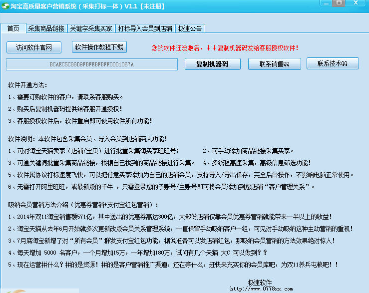 淘宝高质量客户营销系统包含采集会员、导入会员到店铺两大功能!