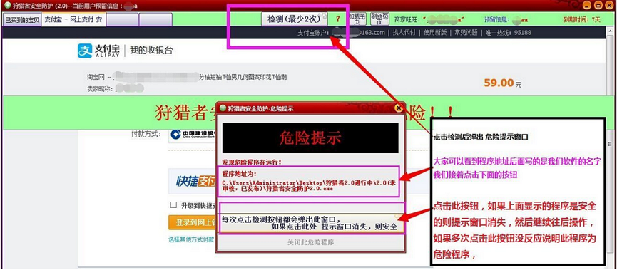切记如果点击检测按钮没有弹窗,则说明软件被劫持,请结束操作