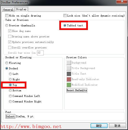 切换选项卡到Display选项,将其中Tabbed text选中,该选项控制标签栏文档以名字的形式显示,而不是缩略图形式;将Docked or Floating设置为Top,这样就会将文件标签栏显示在屏幕上方,也可以设置成上下左右任何一方,设置完成后,显示效果跟word文档基本相同。