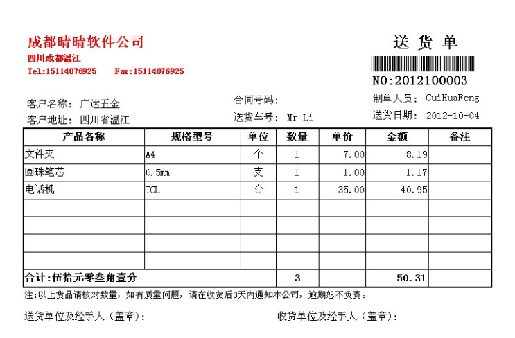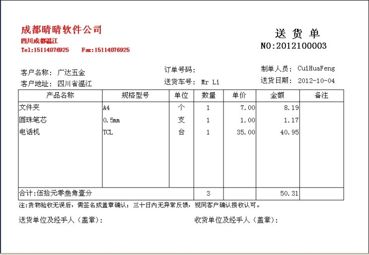 送货单格式多样化:提供多种送货单格式供您选择,格式不满意可联系我们重新设计;