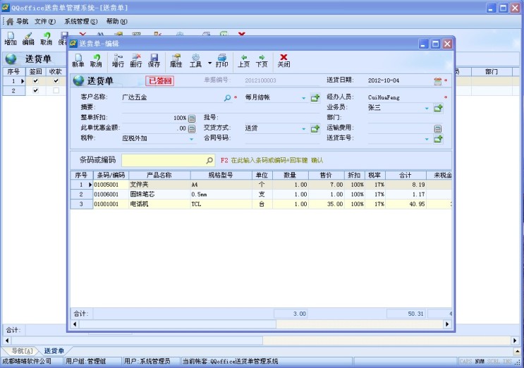 QQoffice送货单管理系统是一款最专业的送货单管理软件,支持100%软件自定义功能。