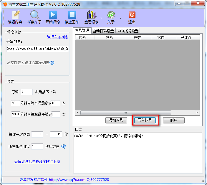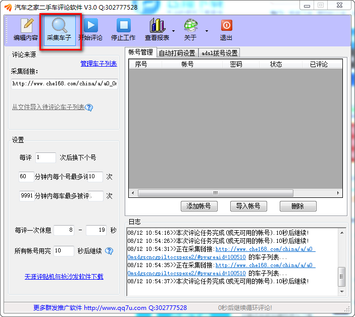 c)若只想评论指定的车子,则应到【查看报表】---【已采集】里删掉原有的,再导入(ctrl+a可全选)
