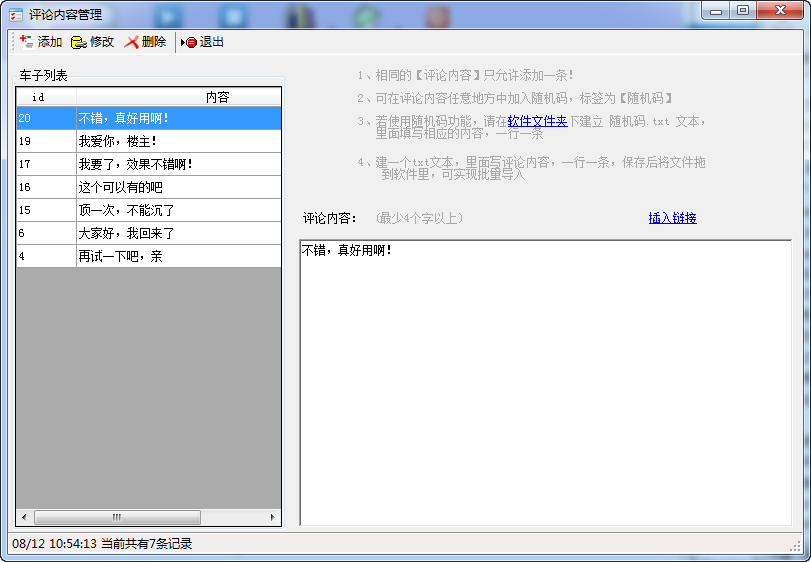 d.评论内容请参考b步骤操作,内容越多越好,发评论时会随机调用里面的内容