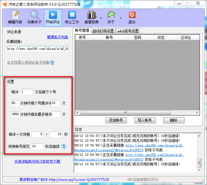 c.要启用打码功能,只需【启用自动打码】,填入正确的打码帐号,打码密码,然后再进行其它操作
