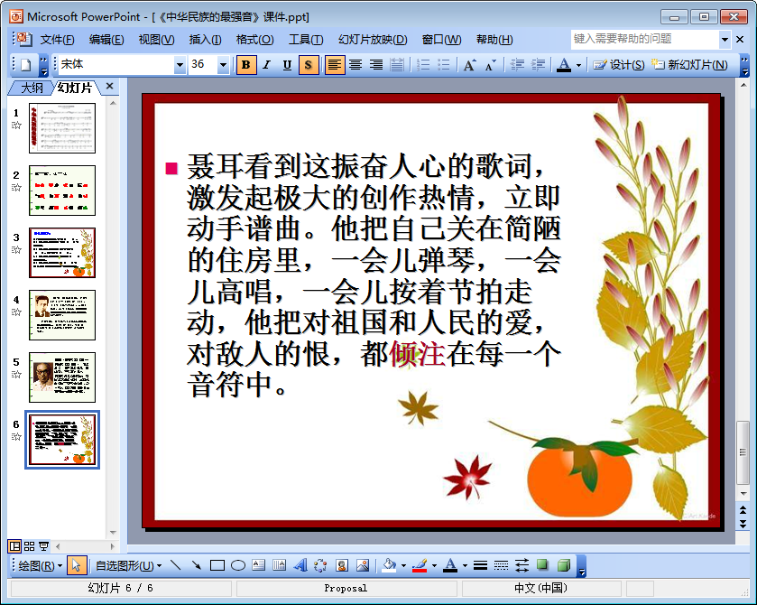 在小学阶段的语文课本中,中华民族的最强音这篇课文扮演着一个重要的角色,它指的是1935年聂耳作曲、田汉作词的《义勇军进行曲》,那么教师应该如何引导学生来理解这篇课文重难点呢?本节内容东坡小编为大家整理带来的是一份共由6页组成的免费版中华民族的最强音ppt课件,欢迎有需要的朋友前来下载查阅该ppt课件。