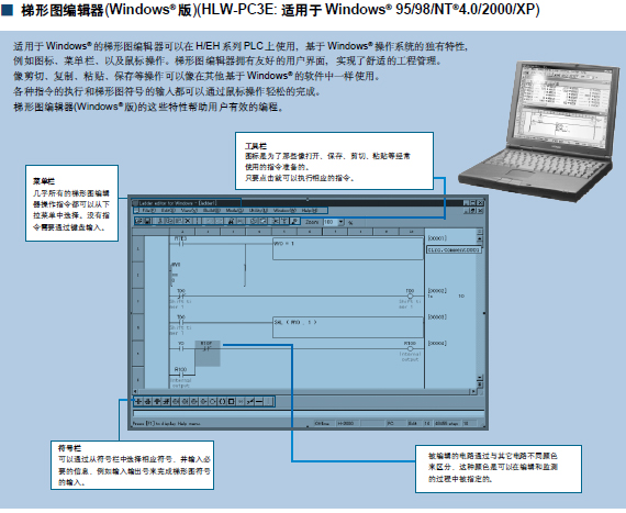 Ladder Editor是GUTTA PLC系统的上位机编程软件。它可以将梯形图(或指令表)逻辑编译成PLC硬件可以识别和执行的中间代码(解释型)和机器码(编译型)。同时,GUTTA Ladder Editor还提供了程序的上下载、在线调试、反编译、梯形图与指令表的等效转换等功能。作为小型PLC系统的上位机编程软件,它能够的提高使用者的开发效率,降低开发难度。
