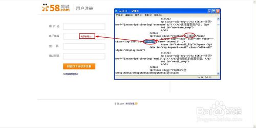 分别找到:(网页用户名编辑框ID),(网页邮箱编辑框ID),(网页密码编辑框ID),(网页确认密码编辑框ID)。