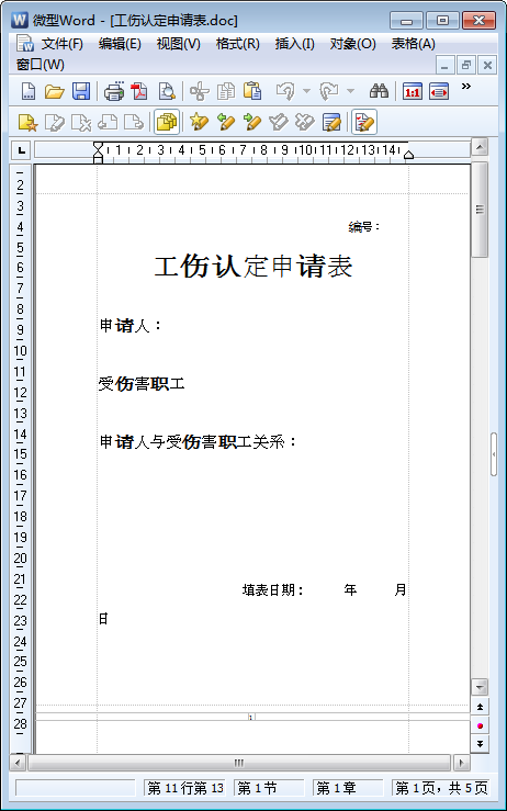 工伤认定申请表是工伤职工在向劳动部门申请工伤认定时需提供的申请材料之一,本节内容东坡小编为大家整理带来的是一份doc格式word版工伤认定申请表模板,本文下方有关于该工伤认定申请表应该如何填写的解答及注意事项等,另外,如果你需要这份工伤认定申请表作为参考资料的话,点击本文相应的下载地址进行下载即可!