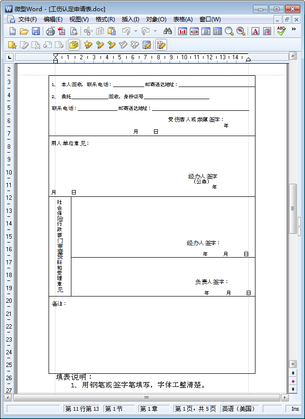 10、此表一式二份,社会保险行政部门、申请人各留存一份。