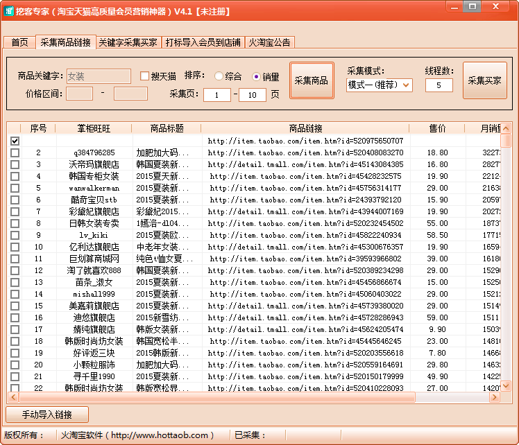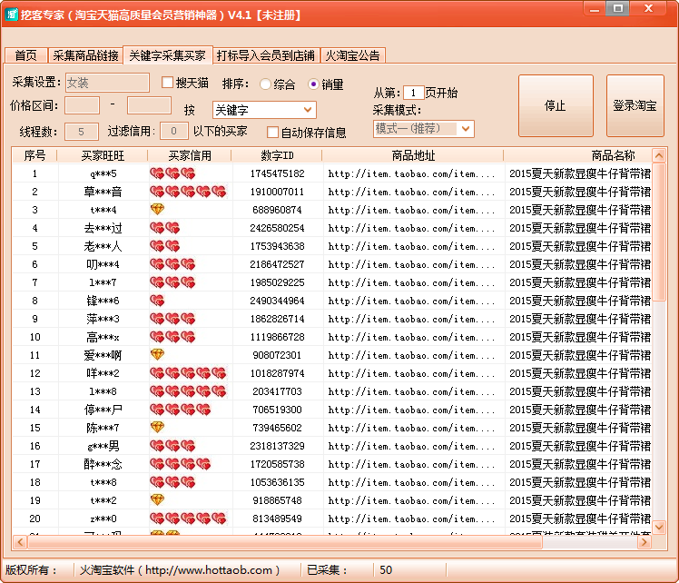 本软件包括买家采集、自动会员吸纳(即打标)两大功能。