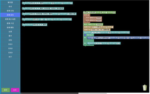 剧情分为托管与非托管两部分。托管剧情需要初始化人物确定镜头。托管剧情中玩家不可操控自由移动,时间也不会走动,移动镜头需要插入镜头指令,多用于重要剧情叙事。非托管剧情不约束玩家与NPC的移动,多用于日常对话与重要程度较低的任务剧情。